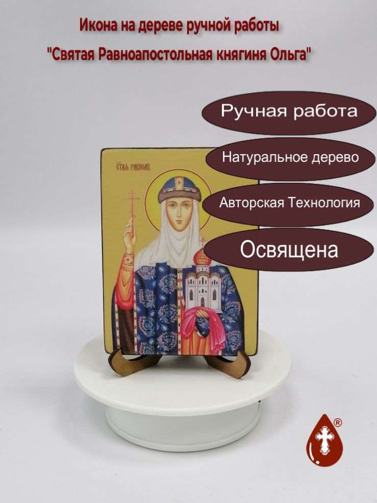 Освященная икона на дереве ручной работы "Святая Равноапостольная княгиня Ольга, 9x12x1,8 см, арт Ид4474-2" представляет собой произведение мастерского искусства, созданное мастерами Семейной Мастерской "РОСА". Икона является авторской работой, что делает ее уникальной и ценной для любого верующего.