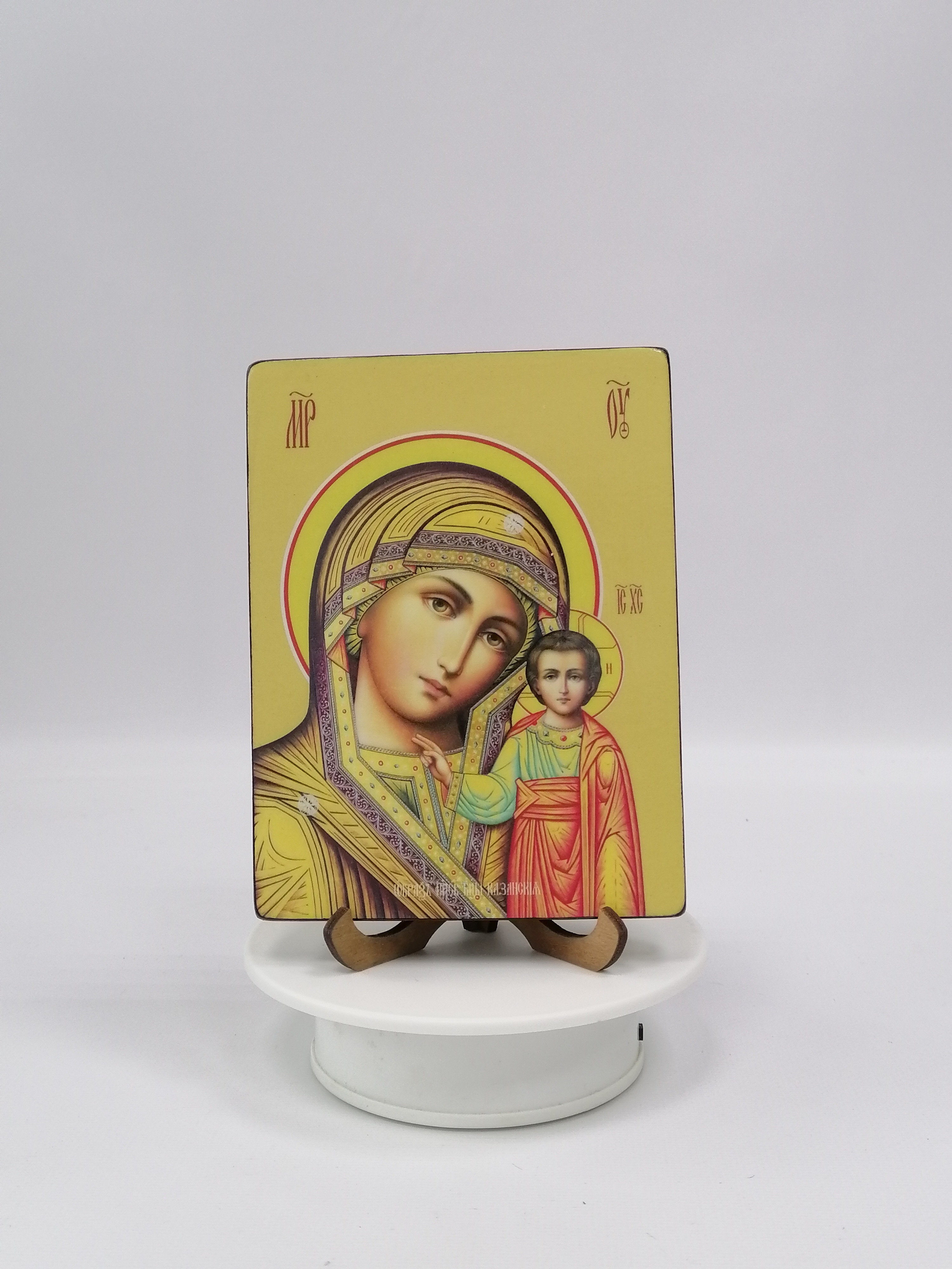 Икона на дереве "Казанская икона Божьей матери, 12x16x1,8 см, арт Ид3348" станет прекрасным подарком для верующего человека, а также займет особое место в любом доме, храме или церкви.