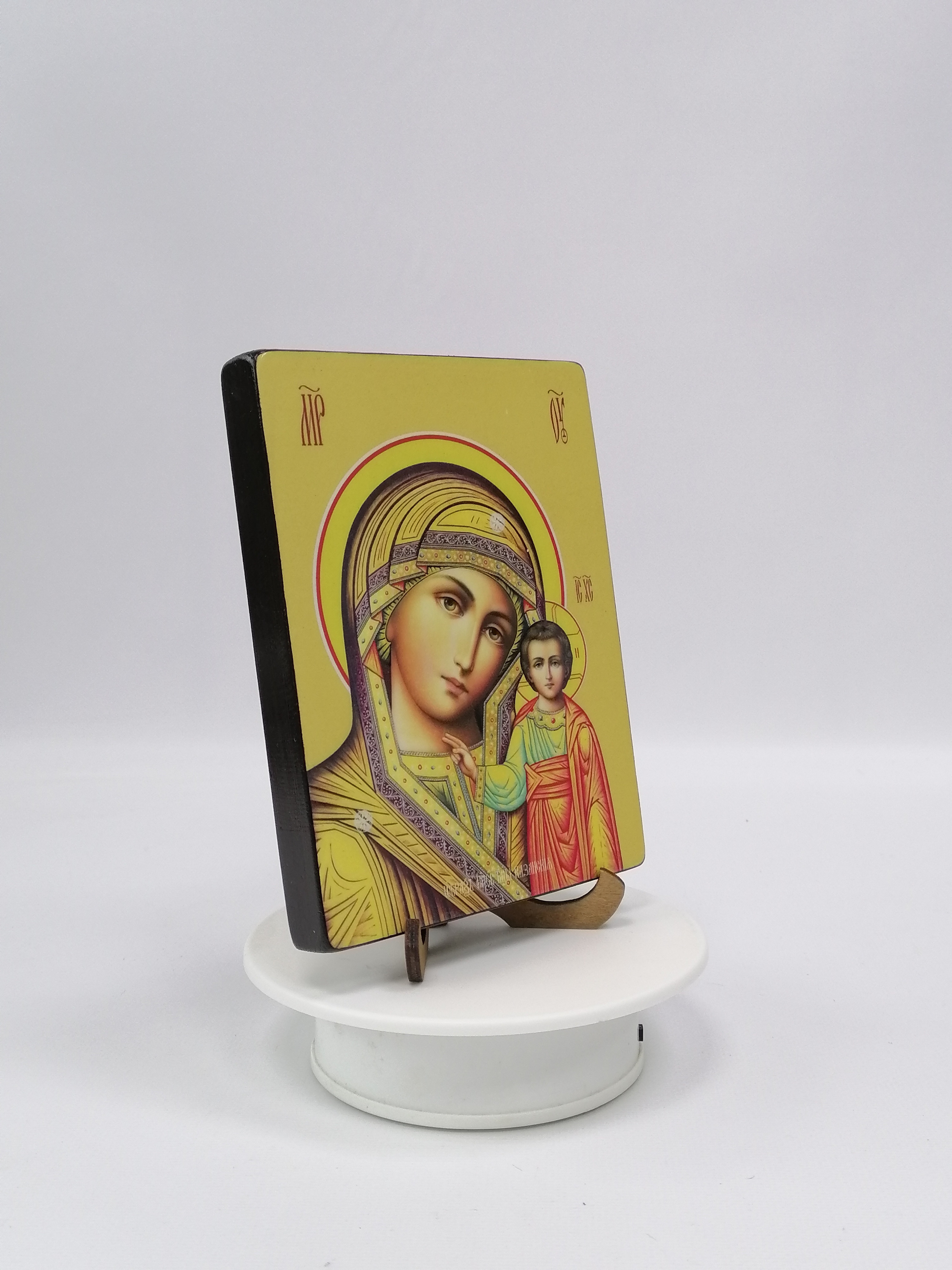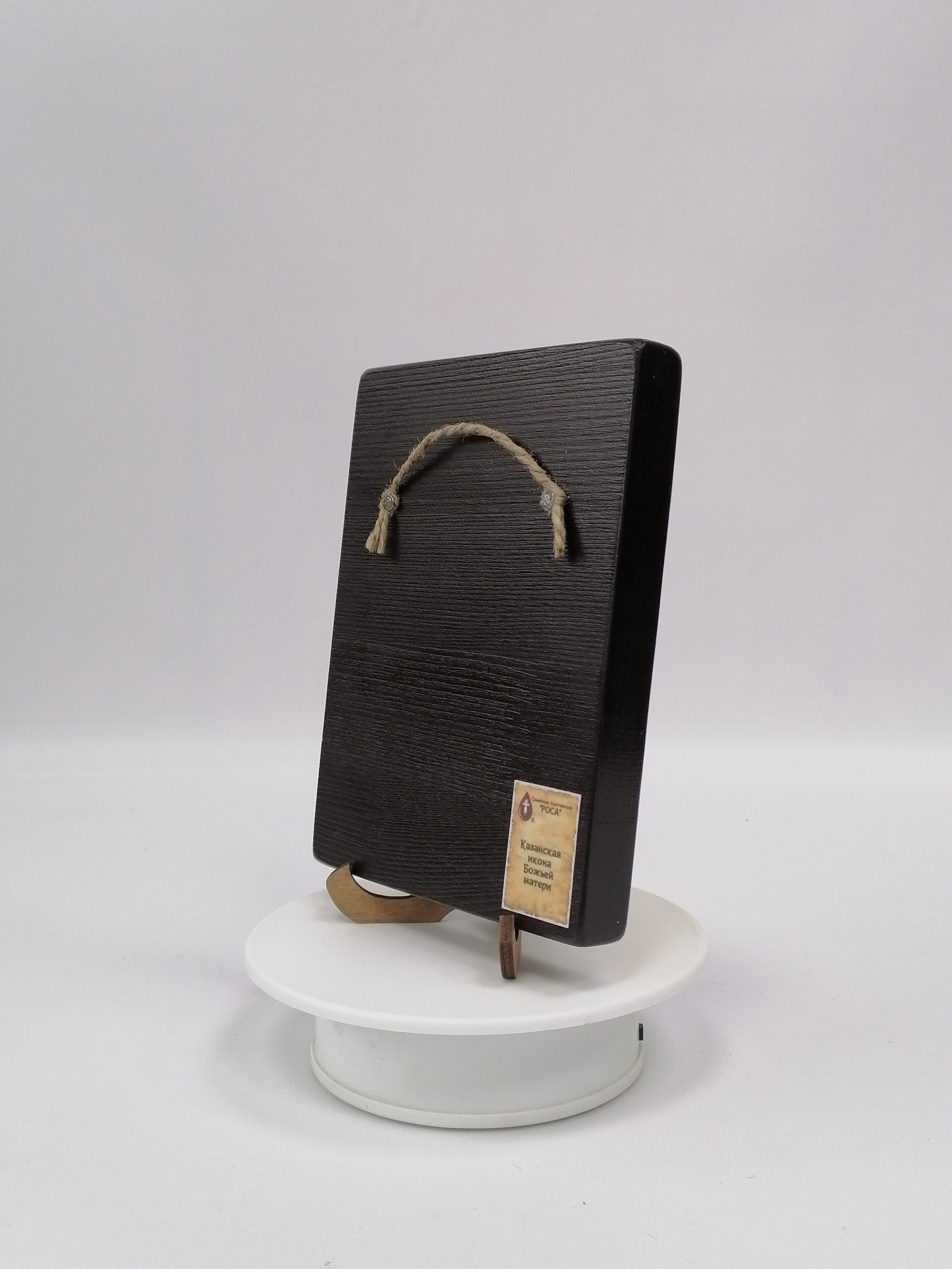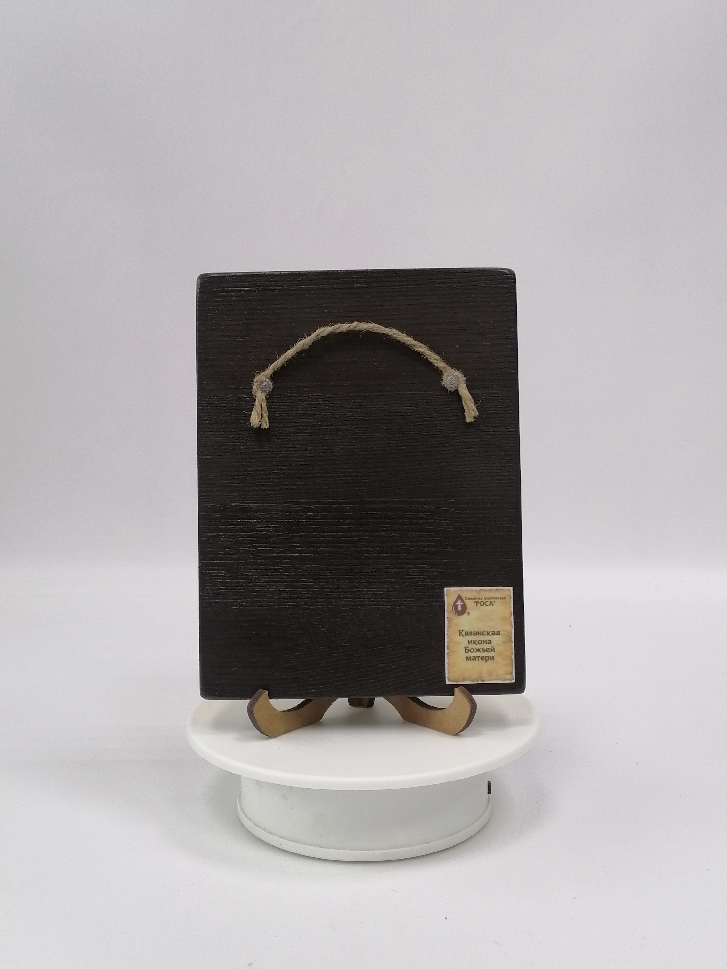 К иконе идет веревочный крепеж для удобного размещения на стене, а также этикетка с информацией об иконе. Надежная упаковка из гофрокартона и воздушно-пузырьковая пленка обеспечивают сохранность товара при транспортировке.