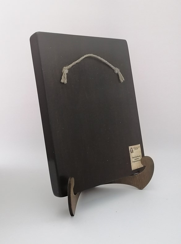 Икона на дереве покрыта несколькими слоями экологически чистого лака, который не выделяет вредных веществ и обеспечивает высокую устойчивость к выцветанию, воздействию ультрафиолета и влаги. Тыльная поверхность доски покрыта темной краской и 3 слоями защитного лака, что предотвращает выгибание иконы.