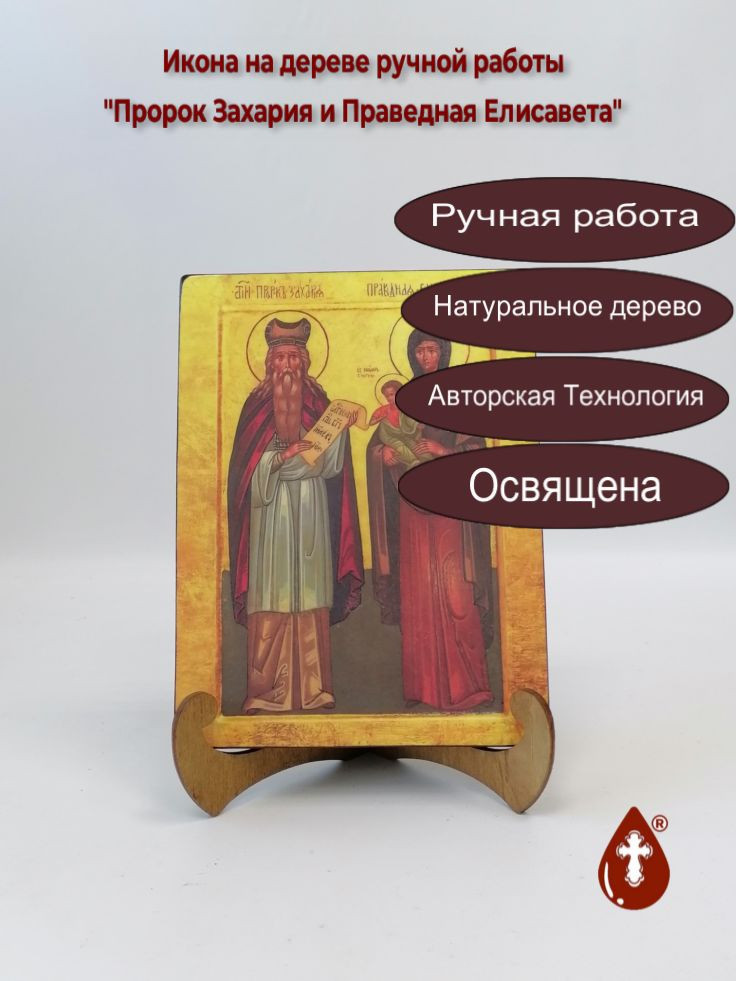 Освященная икона на дереве ручной работы "Пророк Захария и Праведная Елисавета, арт И278" представляет собой произведение мастерского искусства, созданное мастерами Семейной Мастерской "РОСА". Икона является авторской работой, что делает ее уникальной и ценной для любого верующего.