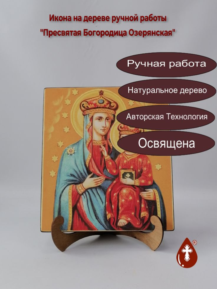Икона на дереве "Пресвятая Богородица Озерянская, 25x28x3 см, арт И284" станет прекрасным подарком для верующего человека, а также займет особое место в любом доме, храме или церкви.