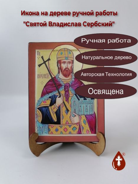 Икона на дереве "Святой Владислав Сербский, 15x20x3 см, арт И2302" станет прекрасным подарком для верующего человека, а также займет особое место в любом доме, храме или церкви.