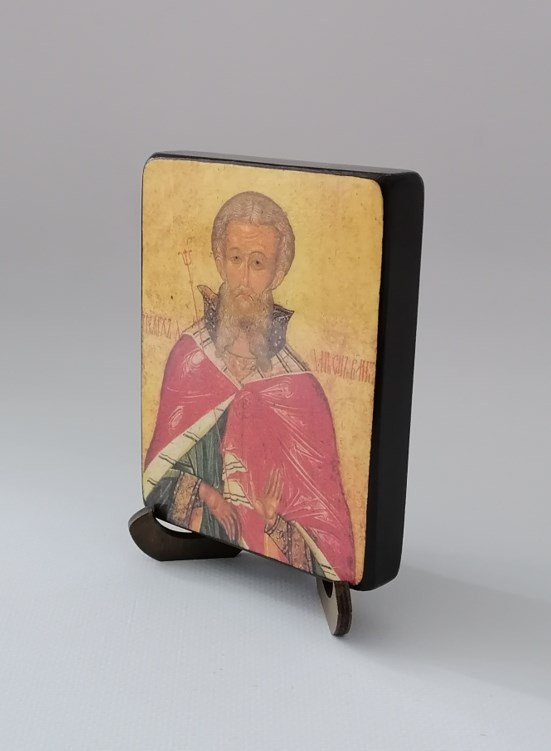 Икона на дереве покрыта несколькими слоями экологически чистого лака, который не выделяет вредных веществ и обеспечивает высокую устойчивость к выцветанию, воздействию ультрафиолета и влаги. Тыльная поверхность доски покрыта темной краской и 3 слоями защитного лака, что предотвращает выгибание иконы.
