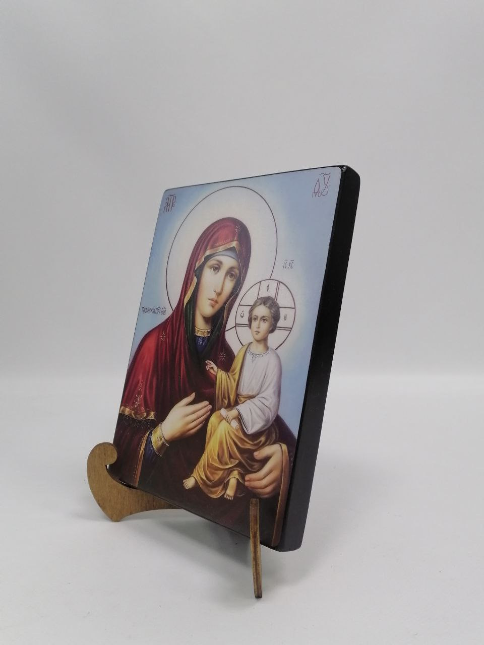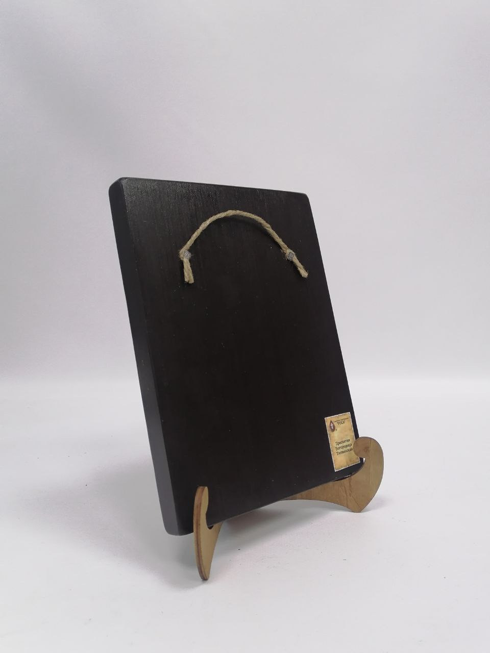 Икона на дереве покрыта несколькими слоями экологически чистого лака, который не выделяет вредных веществ и обеспечивает высокую устойчивость к выцветанию, воздействию ультрафиолета и влаги. Тыльная поверхность доски покрыта темной краской и 3 слоями защитного лака, что предотвращает выгибание иконы.