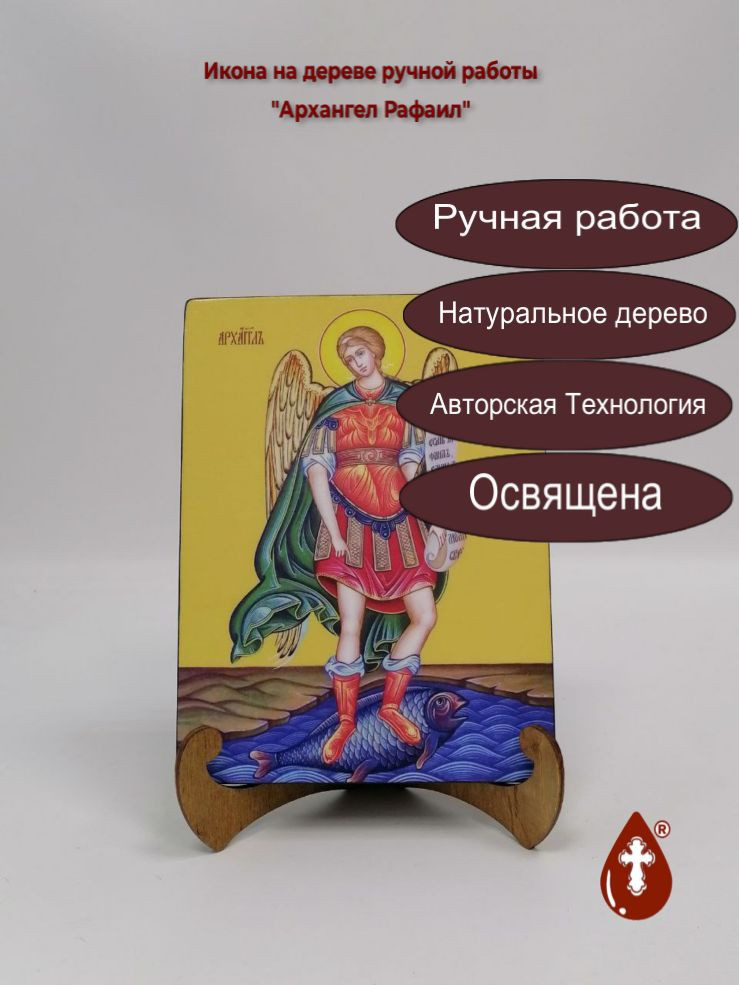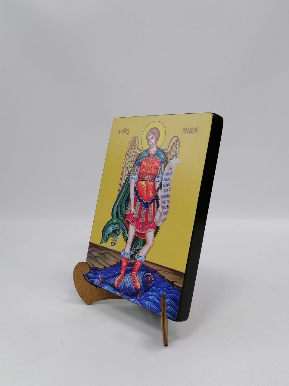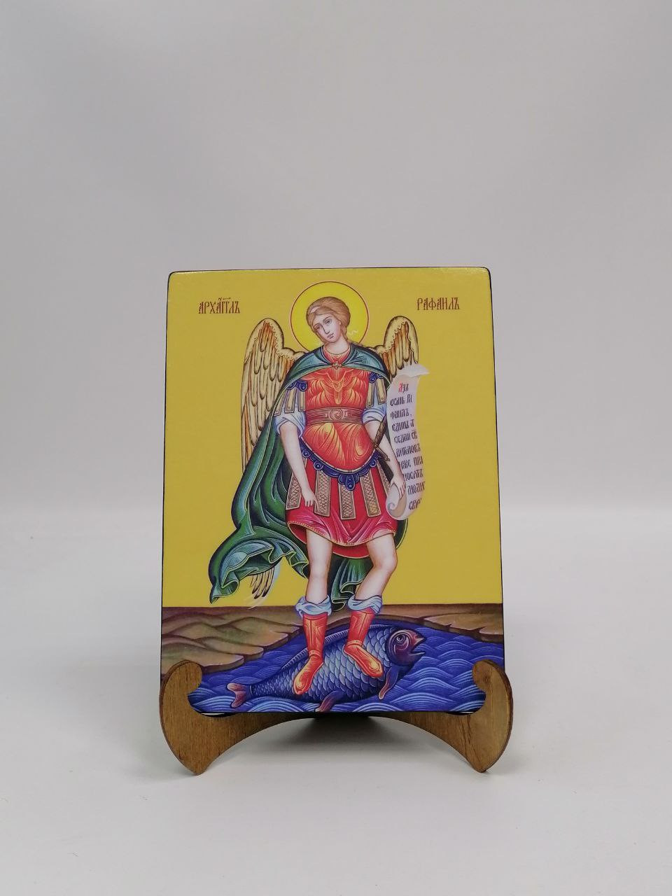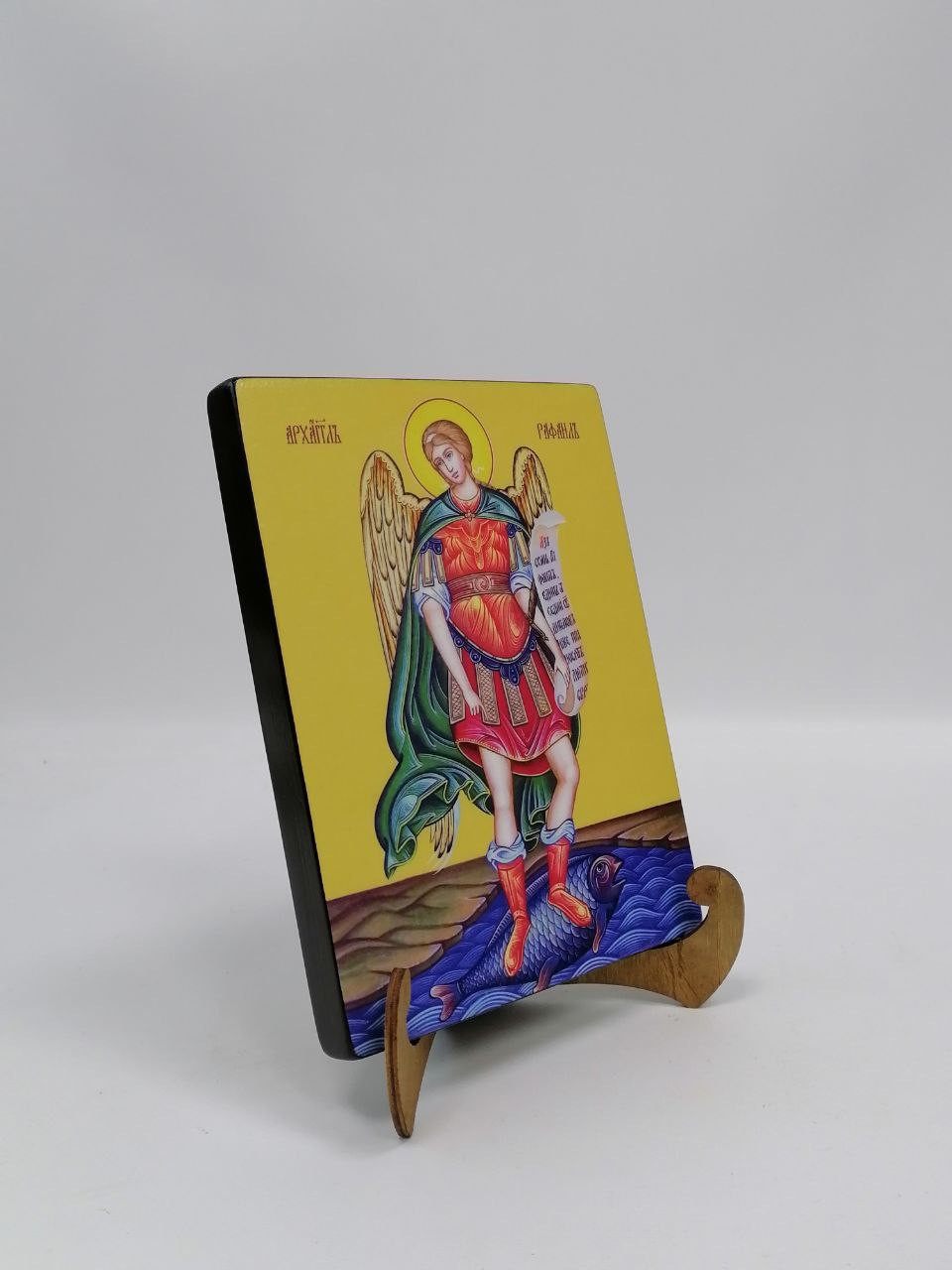 Икона на дереве "Архангел Рафаил, 15x20x1,8 см, арт И7633" станет прекрасным подарком для верующего человека, а также займет особое место в любом доме, храме или церкви.