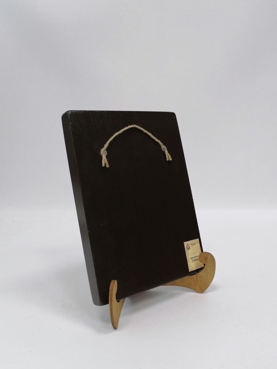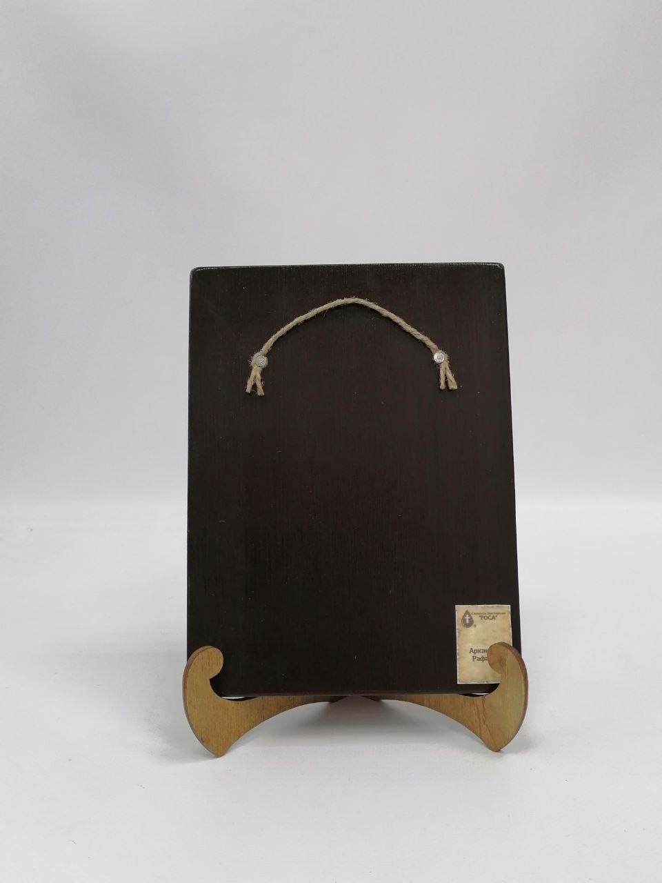 Икона на дереве покрыта несколькими слоями экологически чистого лака, который не выделяет вредных веществ и обеспечивает высокую устойчивость к выцветанию, воздействию ультрафиолета и влаги. Тыльная поверхность доски покрыта темной краской и 3 слоями защитного лака, что предотвращает выгибание иконы.