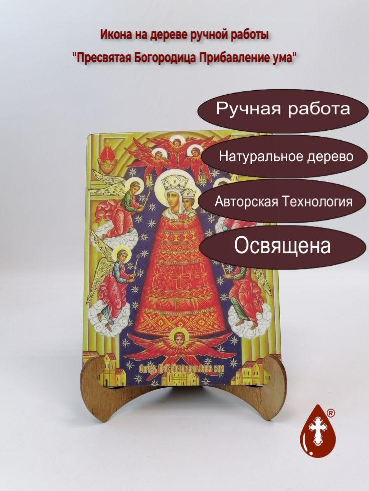 Икона на дереве "Пресвятая Богородица Прибавление ума, 15x20x1,8 см, арт И7962" станет прекрасным подарком для верующего человека, а также займет особое место в любом доме, храме или церкви.