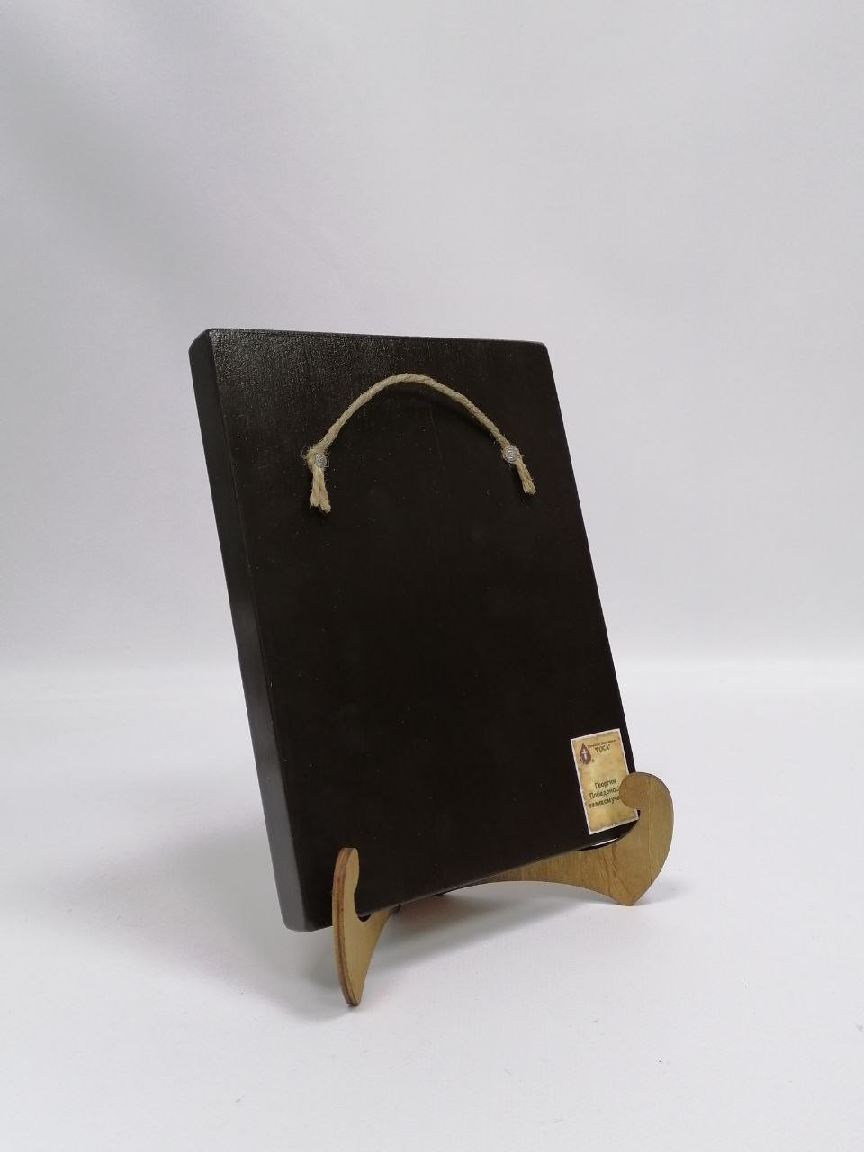 К иконе идет веревочный крепеж для удобного размещения на стене, а также этикетка с информацией об иконе. Надежная упаковка из гофрокартона и воздушно-пузырьковая пленка обеспечивают сохранность товара при транспортировке.
