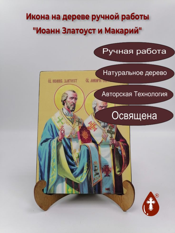 Икона на дереве "Иоанн Златоуст и Макарий, 15x20x1,8 см, арт И8955" станет прекрасным подарком для верующего человека, а также займет особое место в любом доме, храме или церкви.