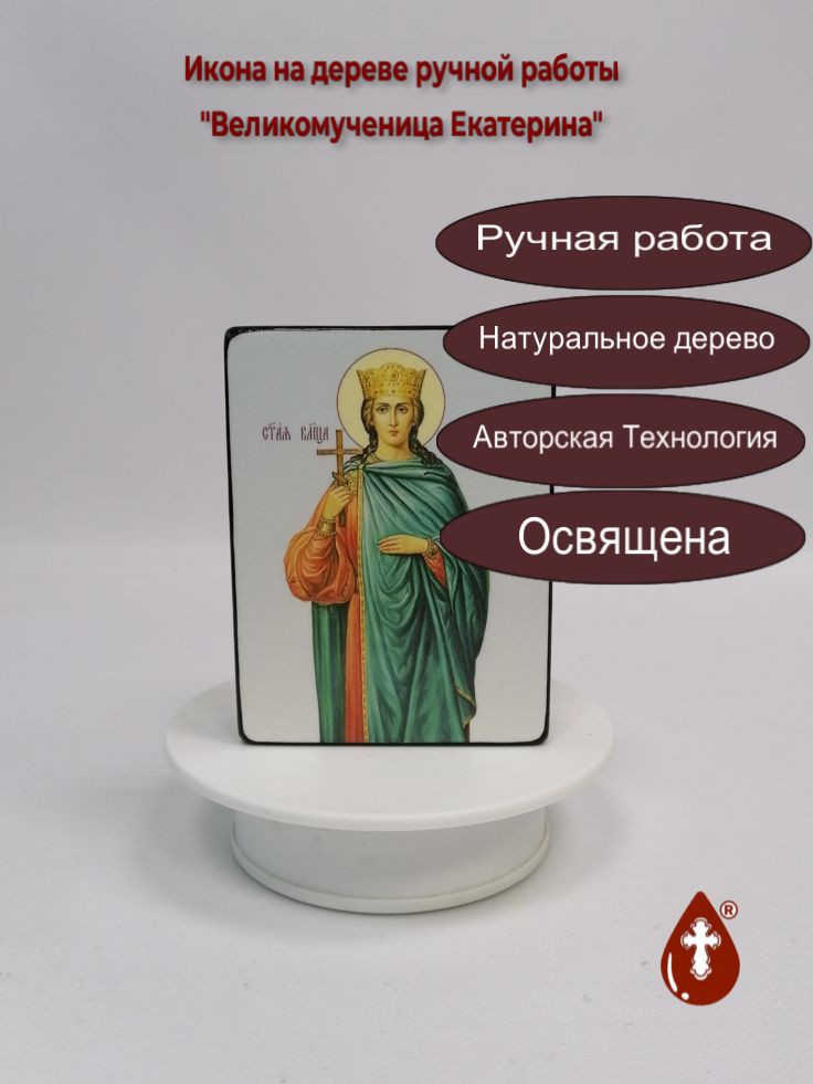 Икона на дереве "Великомученица Екатерина, 9x12x3 см, арт Ик20788" станет прекрасным подарком для верующего человека, а также займет особое место в любом доме, храме или церкви.