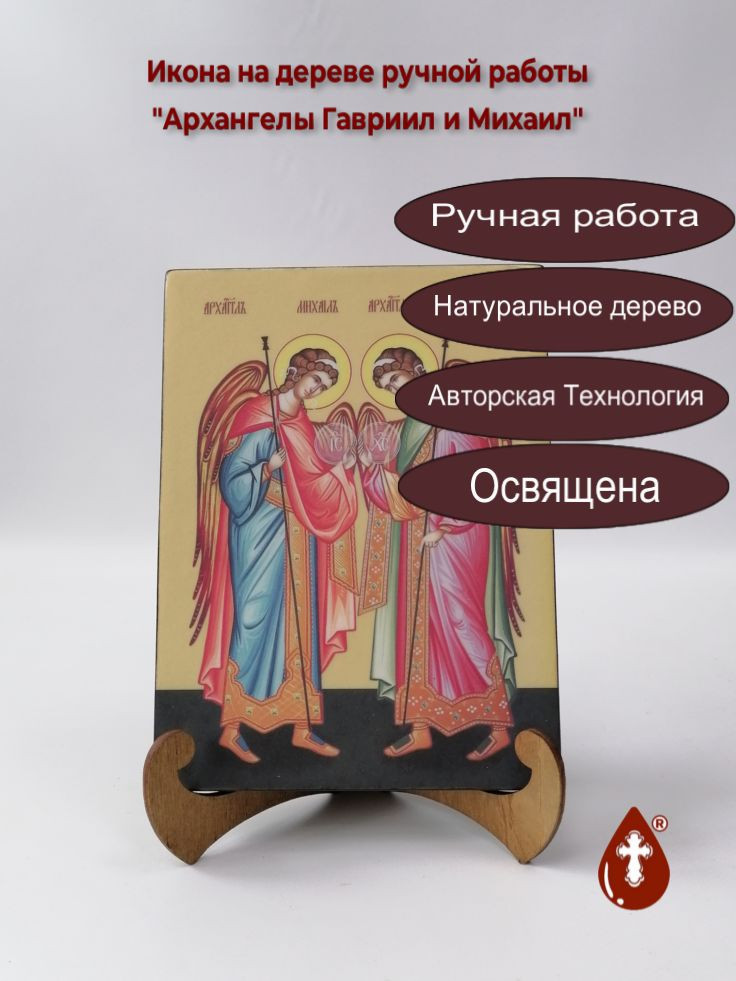 Икона на дереве "Архангелы Гавриил и Михаил, 15x20x1,8 см, арт Ид3220" станет прекрасным подарком для верующего человека, а также займет особое место в любом доме, храме или церкви.