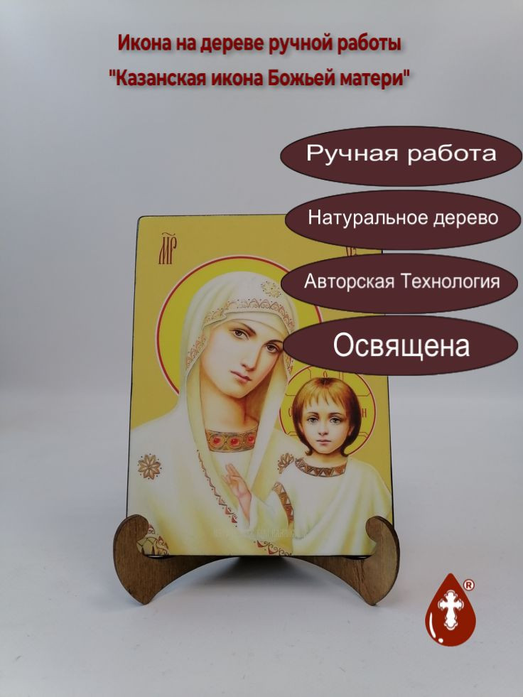 Икона на дереве "Казанская икона Божьей матери, 15x20x1,8 см, арт Ид3258" станет прекрасным подарком для верующего человека, а также займет особое место в любом доме, храме или церкви.