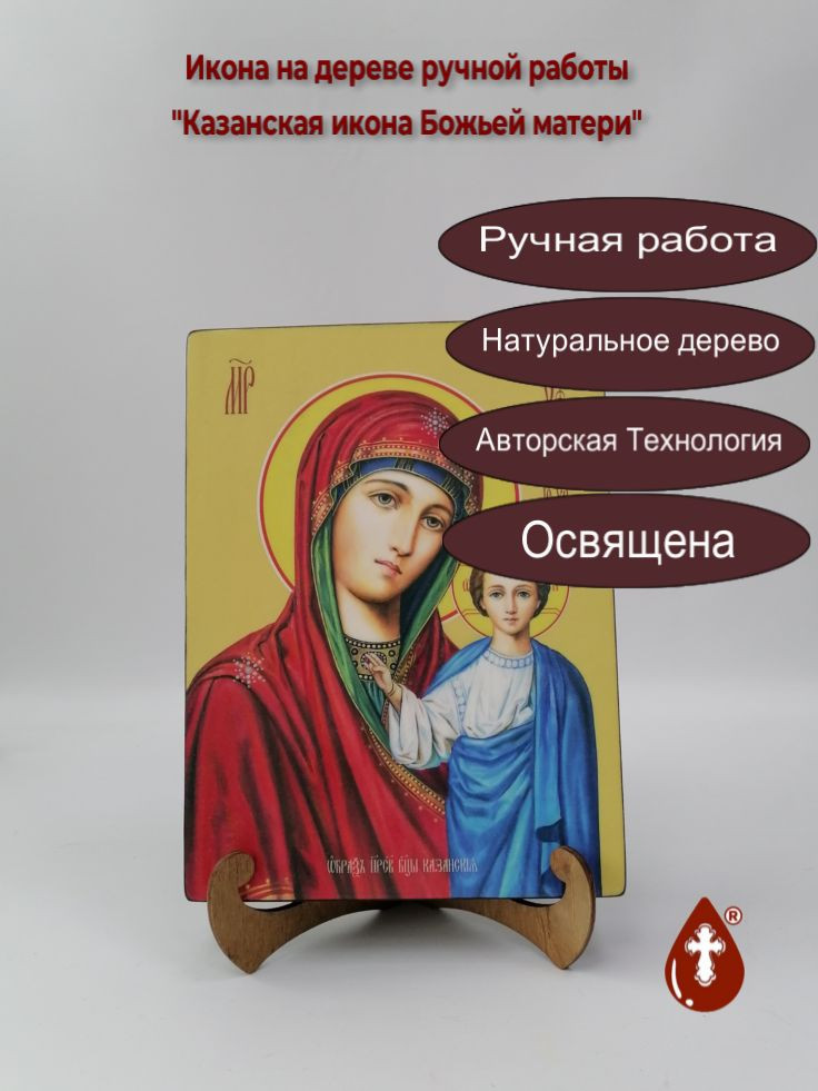 Икона на дереве "Казанская икона Божьей матери, 15x20x1,8 см, арт Ид3499" станет прекрасным подарком для верующего человека, а также займет особое место в любом доме, храме или церкви.