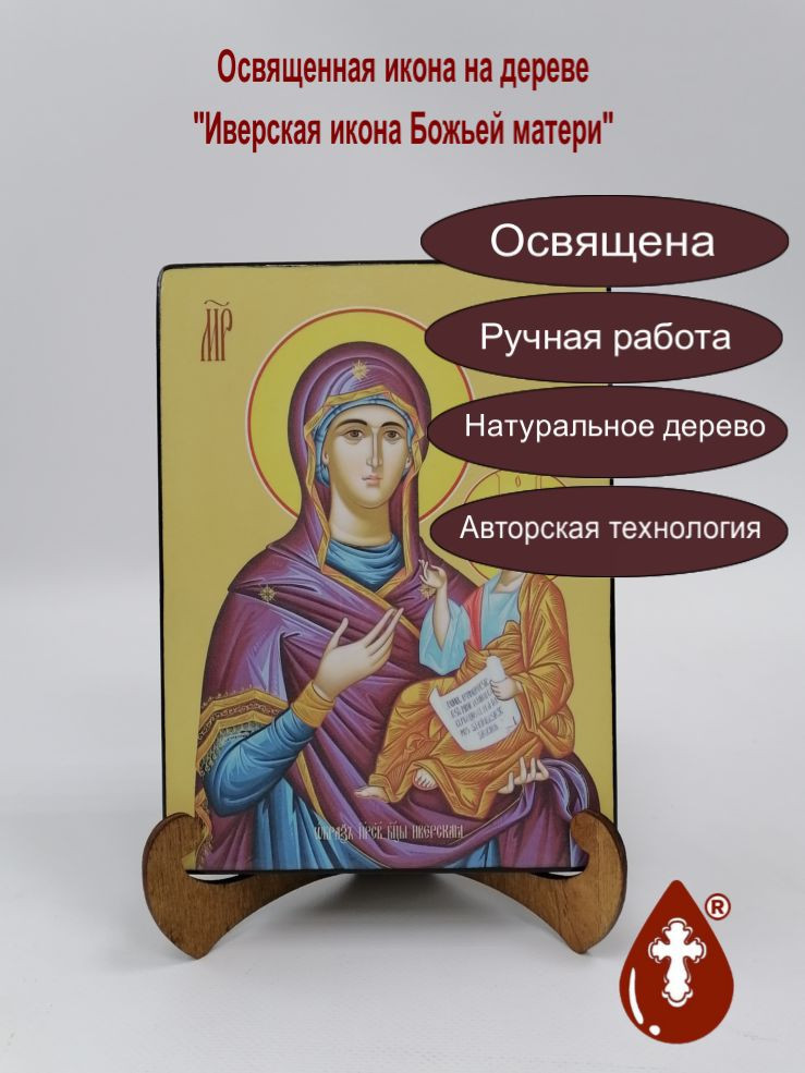 Икона на дереве "Иверская икона Божьей матери, 15x20x1,8 см, арт Ид3508" станет прекрасным подарком для верующего человека, а также займет особое место в любом доме, храме или церкви.