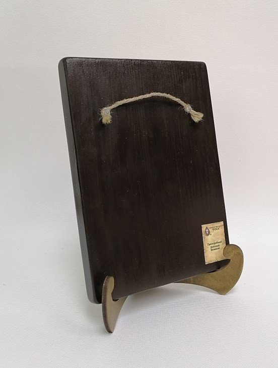 Икона на дереве покрыта несколькими слоями экологически чистого лака, который не выделяет вредных веществ и обеспечивает высокую устойчивость к выцветанию, воздействию ультрафиолета и влаги. Тыльная поверхность доски покрыта темной краской и 3 слоями защитного лака, что предотвращает выгибание иконы.