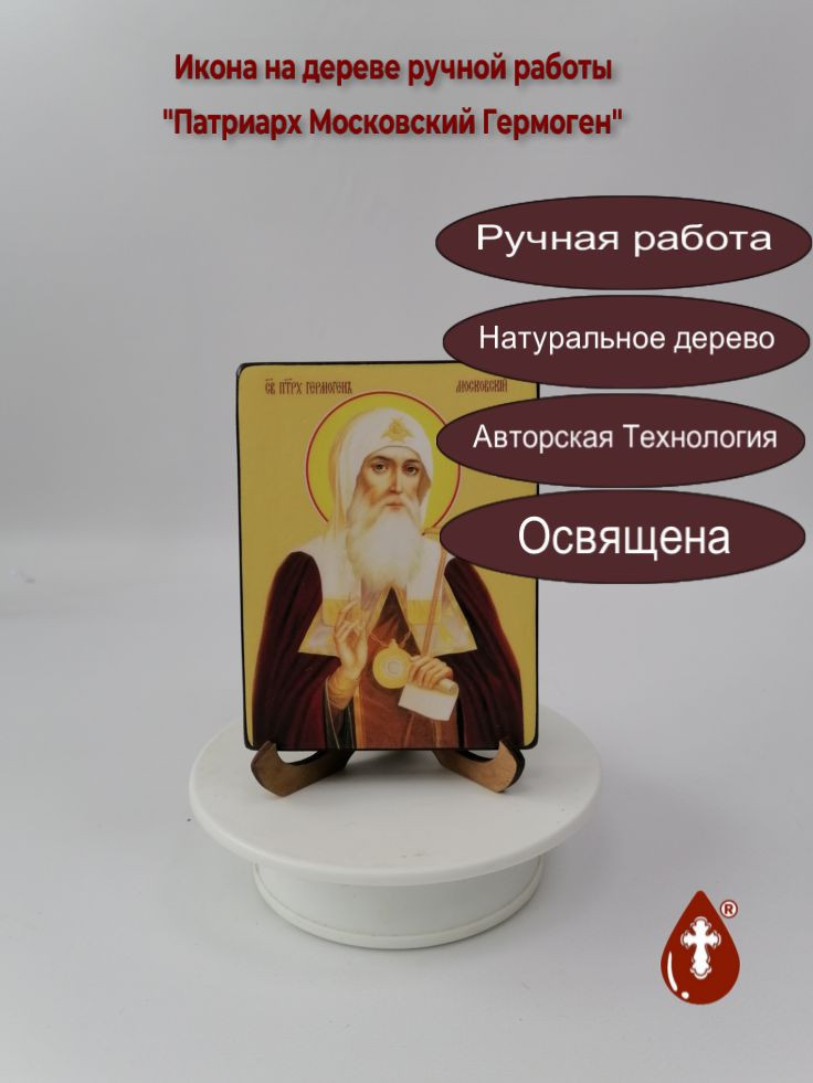 Икона на дереве "Патриарх Московский Гермоген, 15x20x1,8 см, арт Ид3924" станет прекрасным подарком для верующего человека, а также займет особое место в любом доме, храме или церкви.