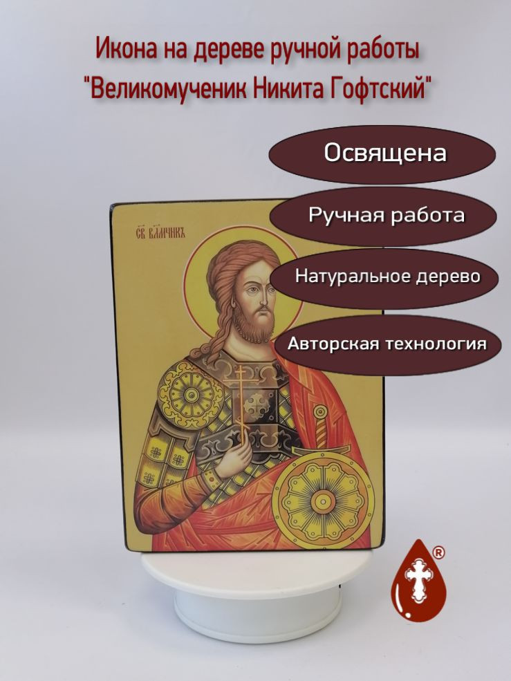 Икона на дереве "Никита Гофтский, великомученик, 15x20x1,8 см, арт Ид4127" станет прекрасным подарком для верующего человека, а также займет особое место в любом доме, храме или церкви.