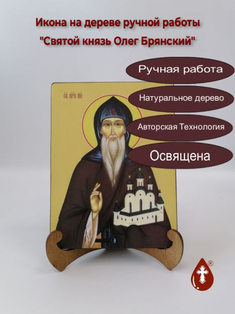 Икона на дереве "Святой князь Олег Брянский, 15x20x1,8 см, арт Ид4139" станет прекрасным подарком для верующего человека, а также займет особое место в любом доме, храме или церкви.