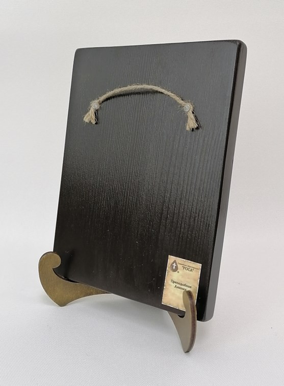 Икона на дереве покрыта несколькими слоями экологически чистого лака, который не выделяет вредных веществ и обеспечивает высокую устойчивость к выцветанию, воздействию ультрафиолета и влаги. Тыльная поверхность доски покрыта темной краской и 3 слоями защитного лака, что предотвращает выгибание иконы.