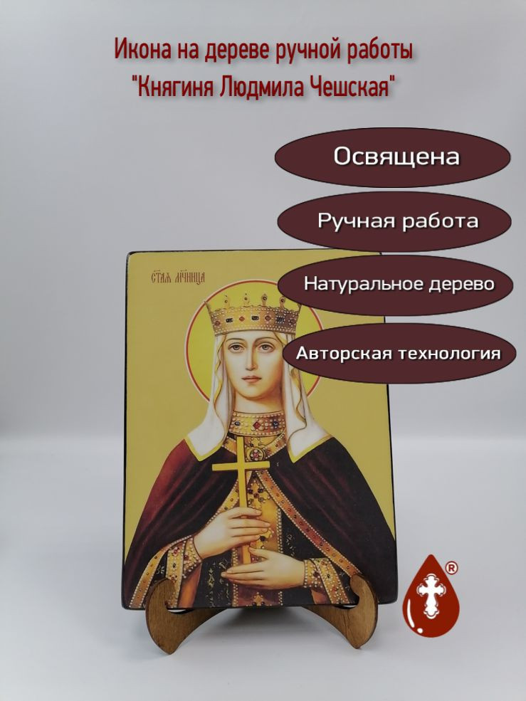 Икона на дереве "Княгиня Людмила Чешская, 15x20x1,8 см, арт Ид4416" станет прекрасным подарком для верующего человека, а также займет особое место в любом доме, храме или церкви.