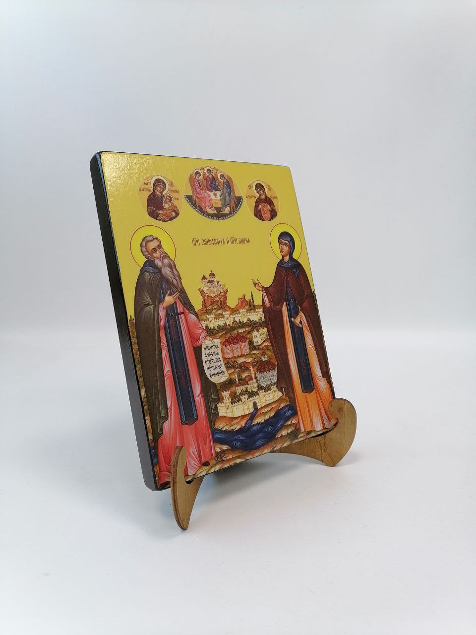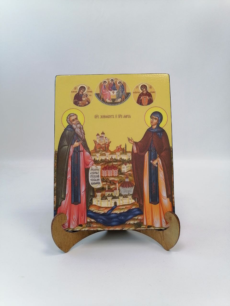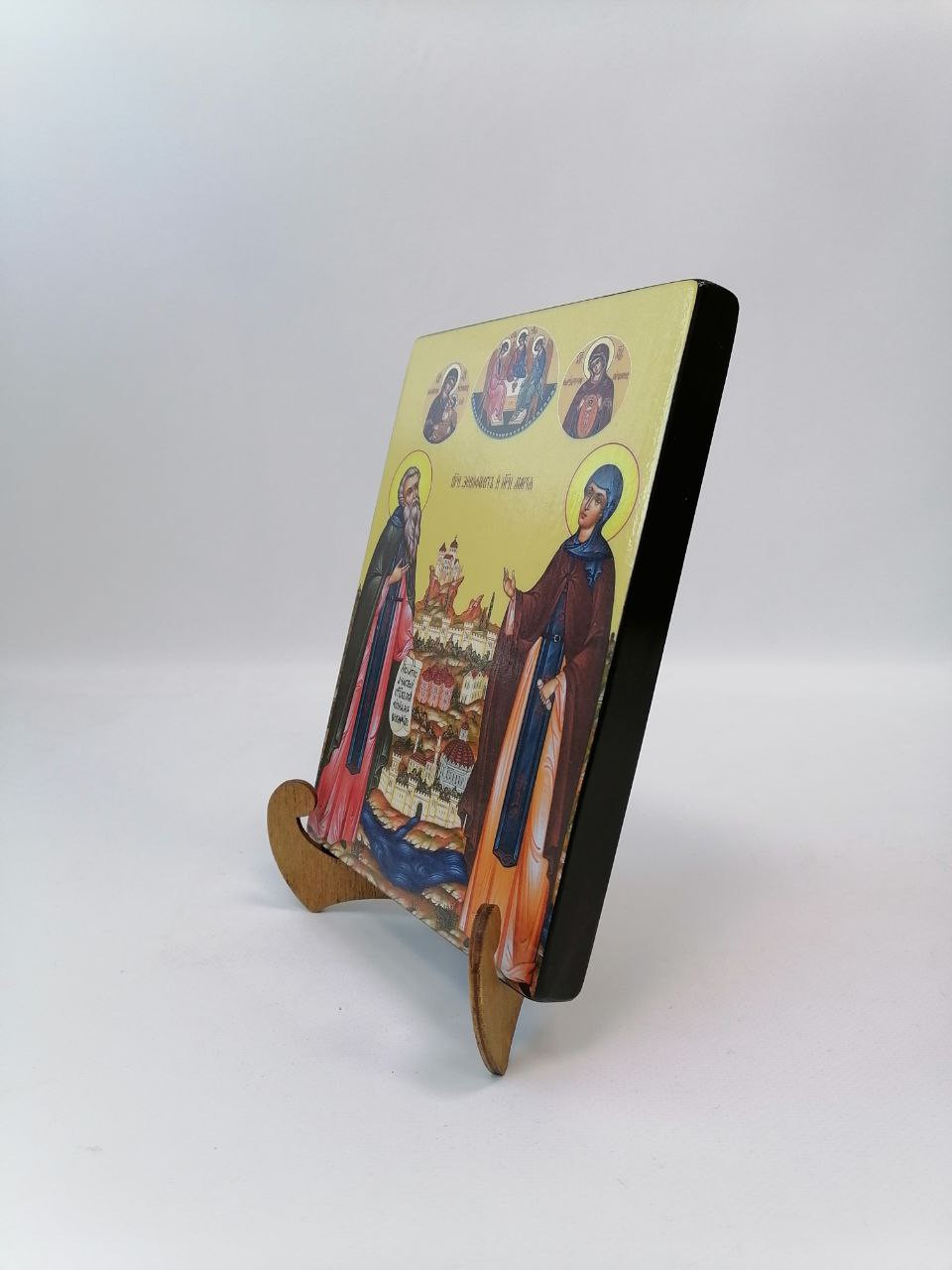 Икона на дереве "Преподобные Ксенофонт и Мария, 15x20x1,8 см, арт Ид5007" станет прекрасным подарком для верующего человека, а также займет особое место в любом доме, храме или церкви.