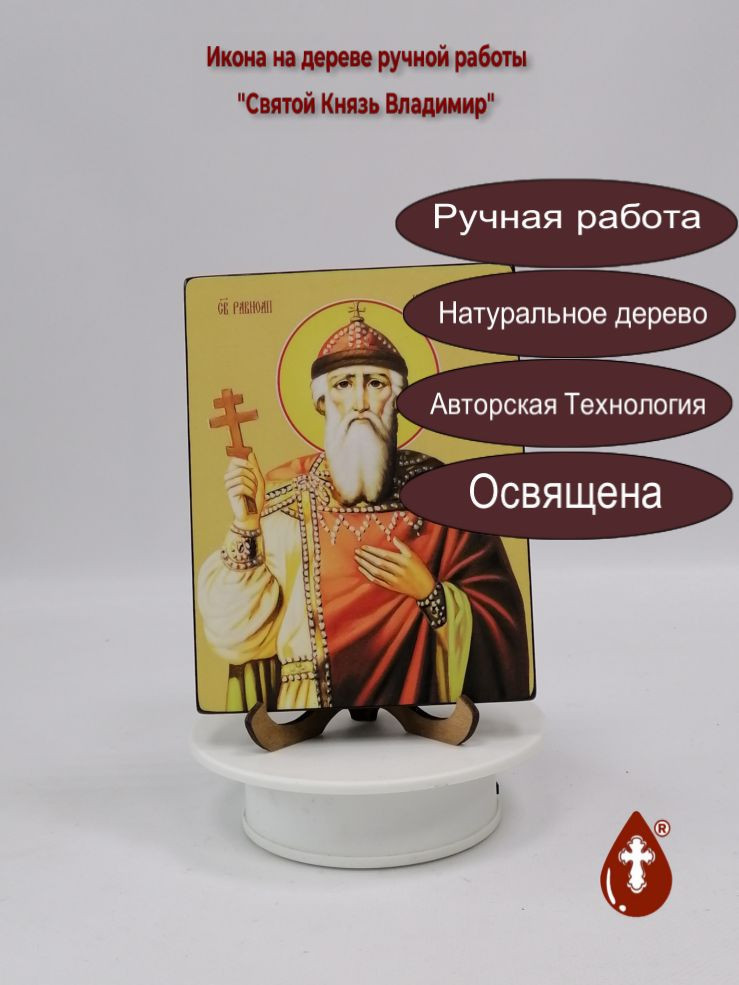 Икона на дереве "Святой Князь Владимир, 15x20x1,8 см, арт Ид25353" станет прекрасным подарком для верующего человека, а также займет особое место в любом доме, храме или церкви.