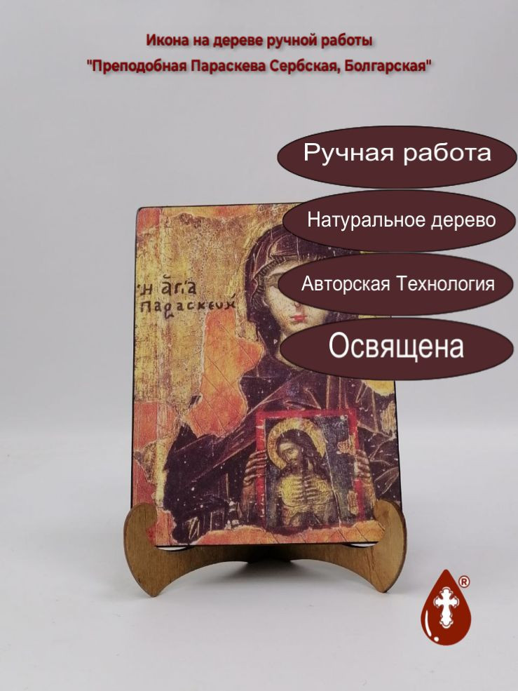 Икона на дереве "Преподобная Параскева Сербская, Болгарская, 15x20x1,8 см, арт А518" станет прекрасным подарком для верующего человека, а также займет особое место в любом доме, храме или церкви.