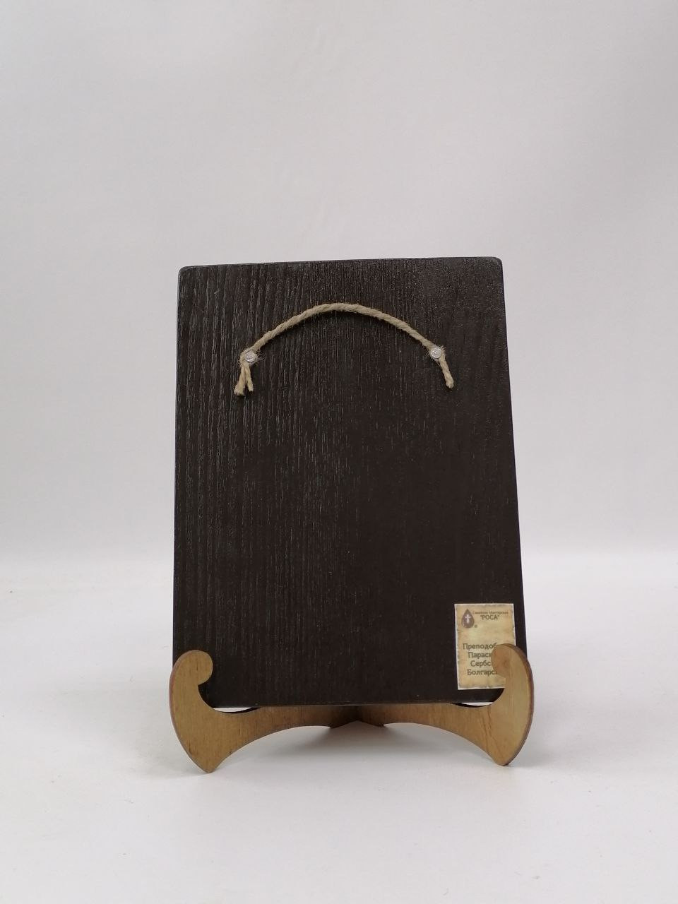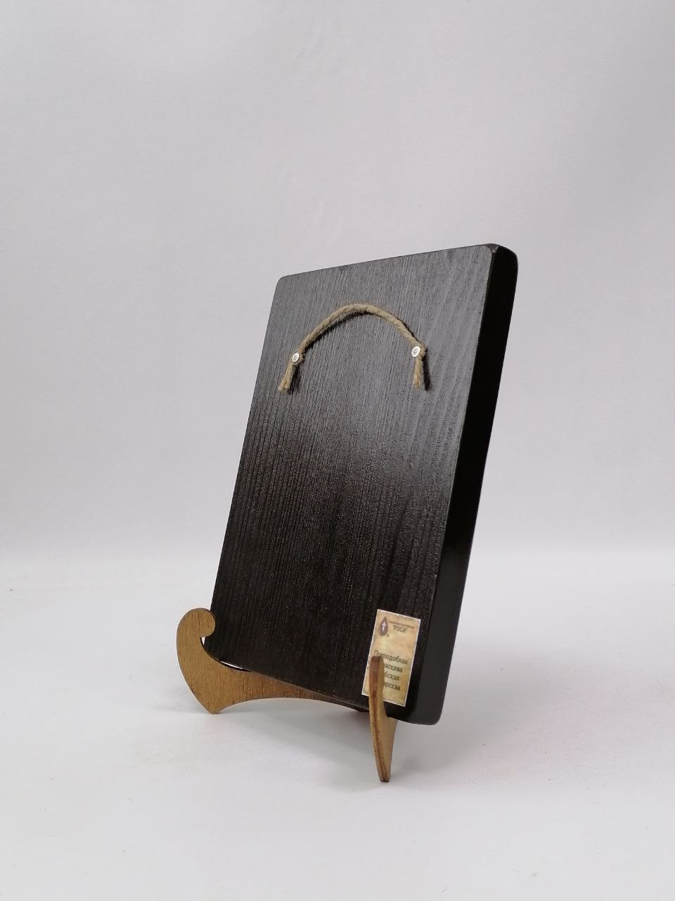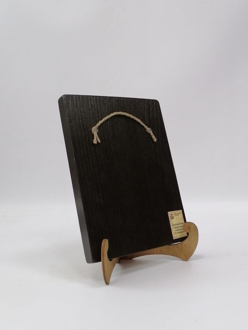 К иконе идет веревочный крепеж для удобного размещения на стене, а также этикетка с информацией об иконе. Надежная упаковка из гофрокартона и воздушно-пузырьковая пленка обеспечивают сохранность товара при транспортировке.