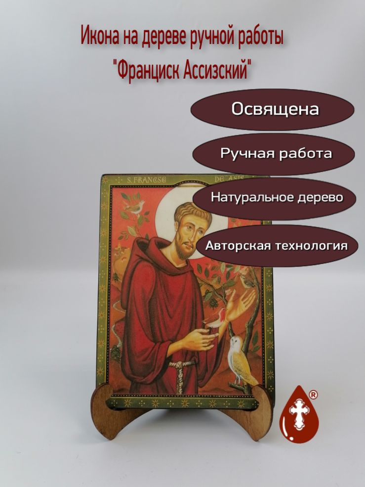 Икона на дереве "Франциск Ассизский, 15x20x1,8 см, арт А5181" станет прекрасным подарком для верующего человека, а также займет особое место в любом доме, храме или церкви.