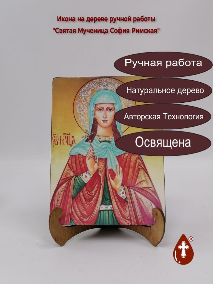 Икона на дереве "Святая Мученица София Римская, 15x20x1,8 см, арт А5392" станет прекрасным подарком для верующего человека, а также займет особое место в любом доме, храме или церкви.