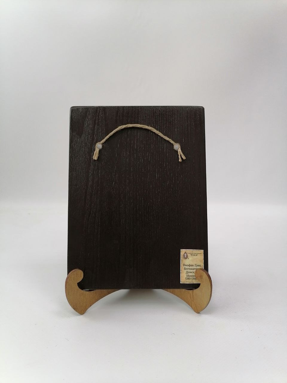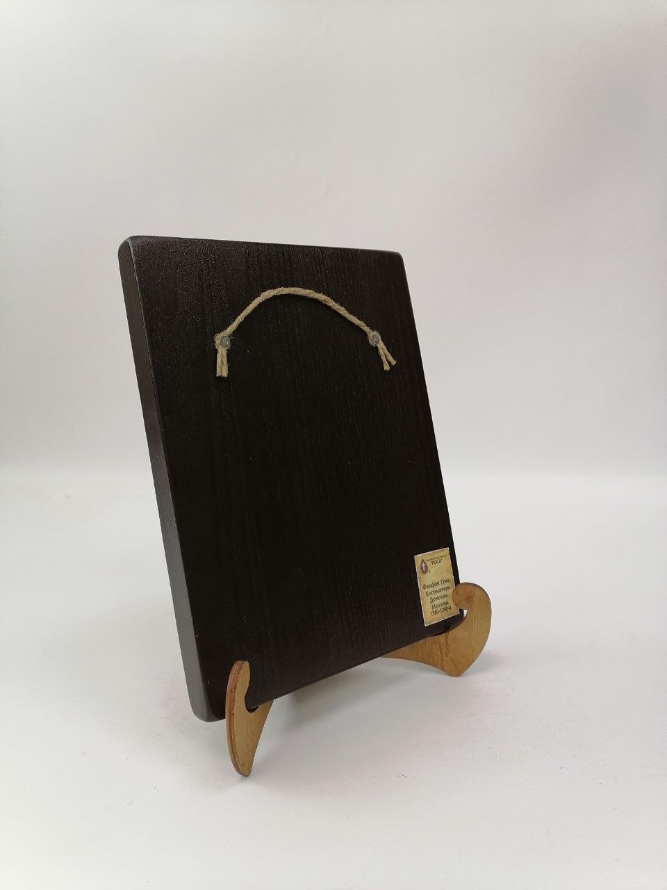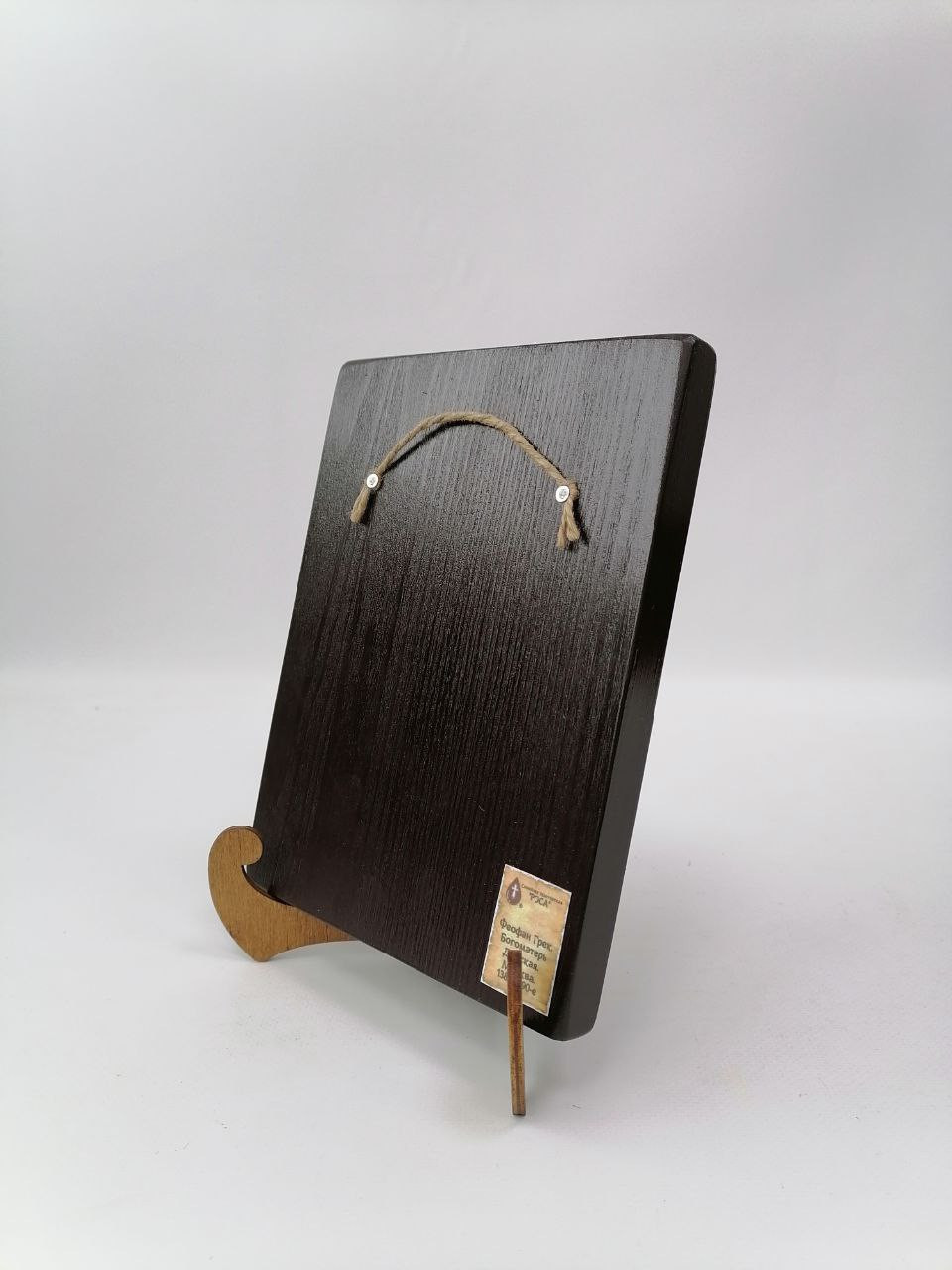 К иконе идет веревочный крепеж для удобного размещения на стене, а также этикетка с информацией об иконе. Надежная упаковка из гофрокартона и воздушно-пузырьковая пленка обеспечивают сохранность товара при транспортировке.