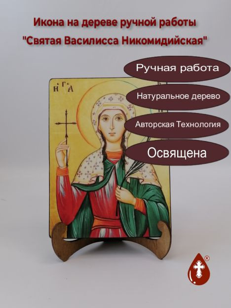 Икона на дереве "Святая Василисса Никомидийская, 15x20x1,8 см, арт А6580" станет прекрасным подарком для верующего человека, а также займет особое место в любом доме, храме или церкви.