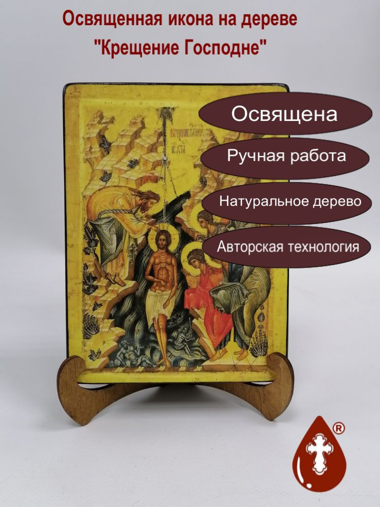 Икона на дереве "Крещение Господне, 15x20x3 см, арт А6739" станет прекрасным подарком для верующего человека, а также займет особое место в любом доме, храме или церкви.