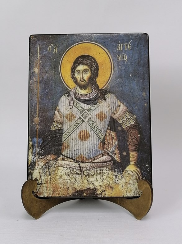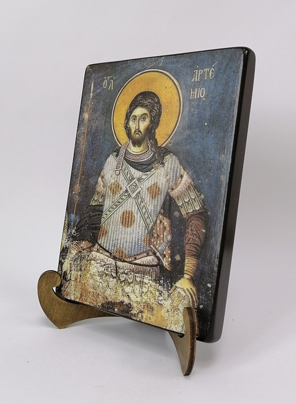 Икона на дереве "Святой Великомученик Артемий Антиохийский, Византия, XIV век, 15x20x1,8 см, арт А7050" станет прекрасным подарком для верующего человека, а также займет особое место в любом доме, храме или церкви.