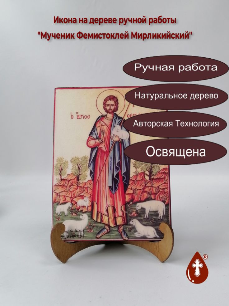 Освященная икона на дереве ручной работы "Мученик Фемистоклей Мирликийский, 15x20x1,8 см, арт А7150" представляет собой произведение мастерского искусства, созданное мастерами Семейной Мастерской "РОСА". Икона является авторской работой, что делает ее уникальной и ценной для любого верующего.