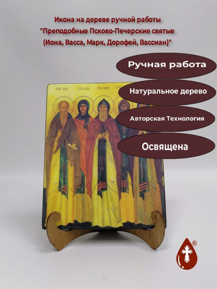 Икона на дереве "Преподобные Псково-Печерские святые (Иона, Васса, Марк, Дорофей, Вассиан). 16x20x1,8 см, арт Б0177" станет прекрасным подарком для верующего человека, а также займет особое место в любом доме, храме или церкви.