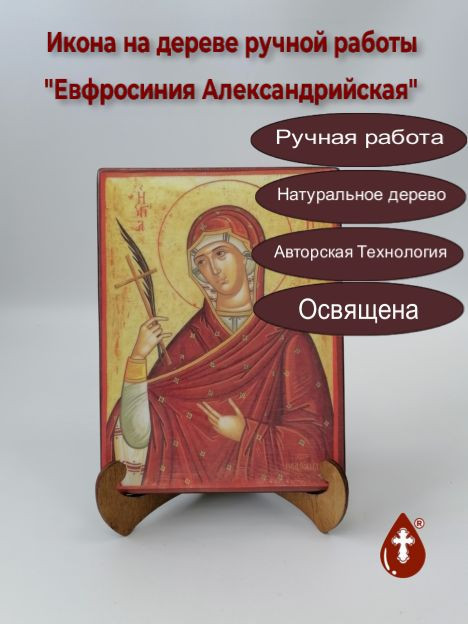 Икона на дереве "Евфросиния Александрийская, 15x20x1,8 см, арт Б0385" станет прекрасным подарком для верующего человека, а также займет особое место в любом доме, храме или церкви.