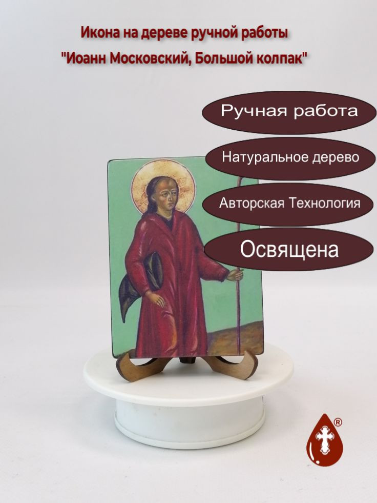 Икона на дереве "Иоанн Московский, Большой колпак, 9x12x1,8 см, арт В041" станет прекрасным подарком для верующего человека, а также займет особое место в любом доме, храме или церкви.