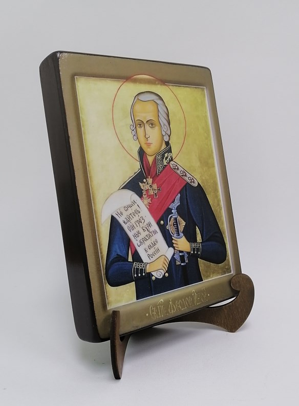 Икона на дереве "Праведный Феодор Ушаков, воин, 15x20x3 см, арт В2754" станет прекрасным подарком для верующего человека, а также займет особое место в любом доме, храме или церкви.