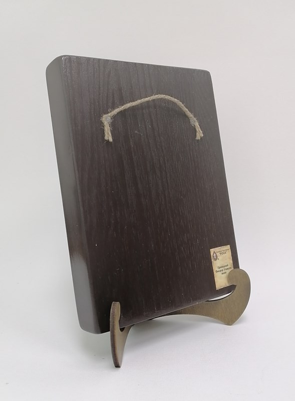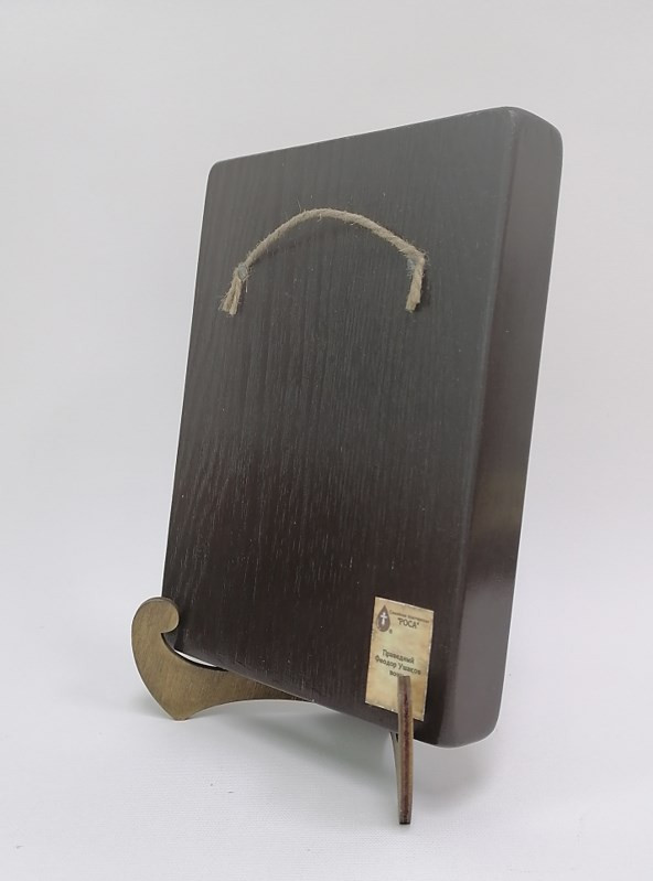 Икона на дереве покрыта несколькими слоями экологически чистого лака, который не выделяет вредных веществ и обеспечивает высокую устойчивость к выцветанию, воздействию ультрафиолета и влаги. Тыльная поверхность доски покрыта темной краской и 3 слоями защитного лака, что предотвращает выгибание иконы.