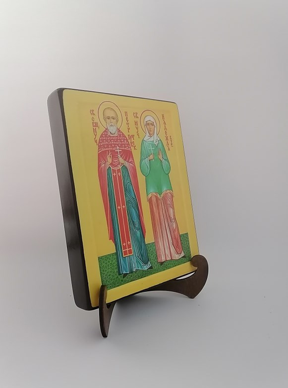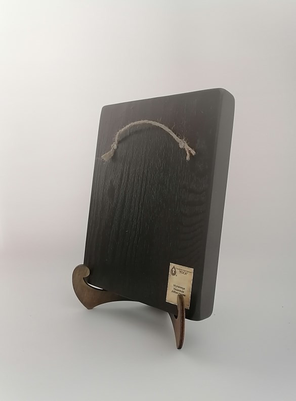 Икона на дереве покрыта несколькими слоями экологически чистого лака, который не выделяет вредных веществ и обеспечивает высокую устойчивость к выцветанию, воздействию ультрафиолета и влаги. Тыльная поверхность доски покрыта темной краской и 3 слоями защитного лака, что предотвращает выгибание иконы.