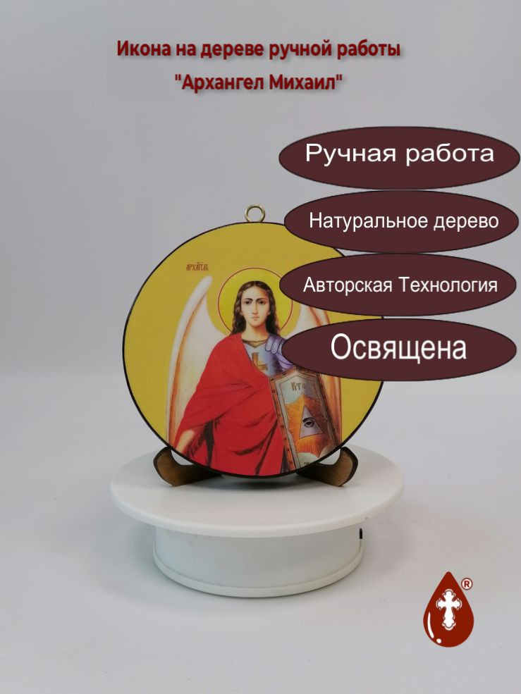 Икона на дереве "Архангел Михаил. Круглая икона на дереве. Диаметр 12 см. Толщина 1,8 см, арт К060" станет прекрасным подарком для верующего человека, а также займет особое место в любом доме, храме или церкви.