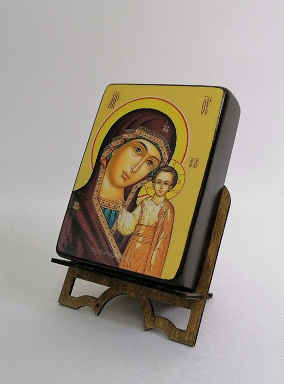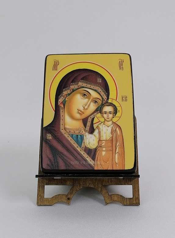 Икона на дереве "Казанская икона Божьей матери, 9x12x3 см, арт Ид3370" станет прекрасным подарком для верующего человека, а также займет особое место в любом доме, храме или церкви.
