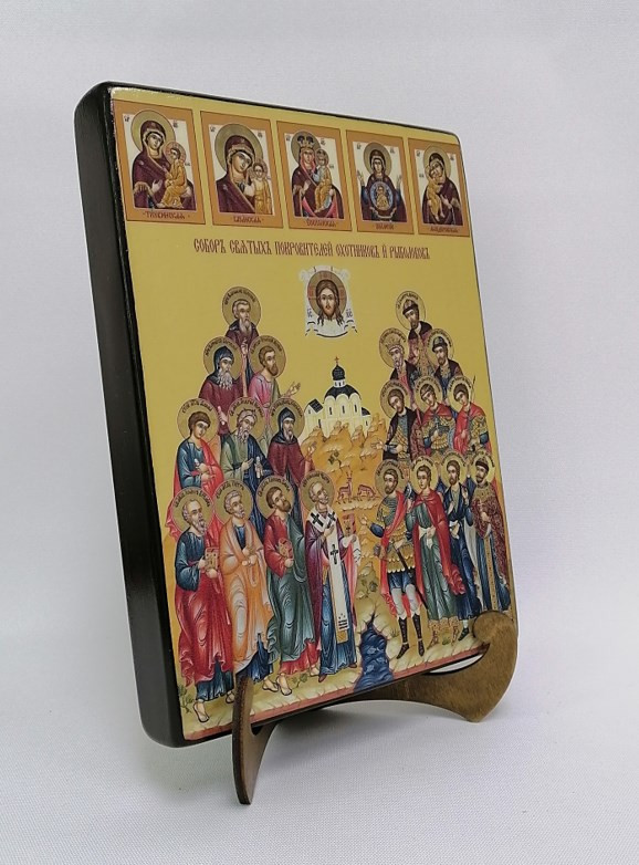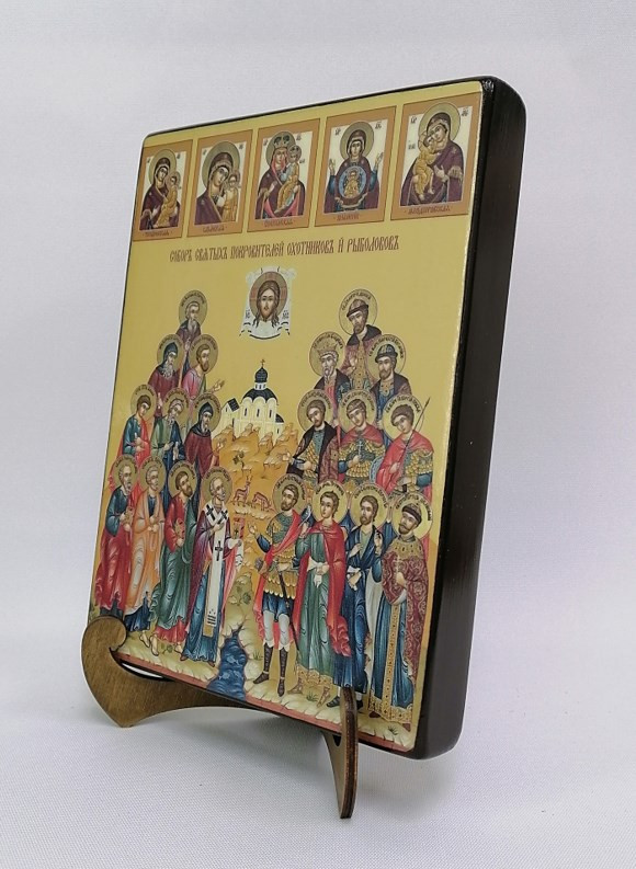 Икона на дереве "Собор святых покровителей охотников и рыболовов, 18x24x3 см, арт Ид4913-2" станет прекрасным подарком для верующего человека, а также займет особое место в любом доме, храме или церкви.