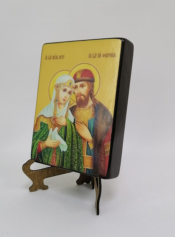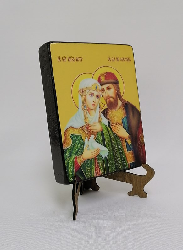 Икона на дереве "Петр и Феврония, 12x16x3 см, арт И8989-5" станет прекрасным подарком для верующего человека, а также займет особое место в любом доме, храме или церкви.
