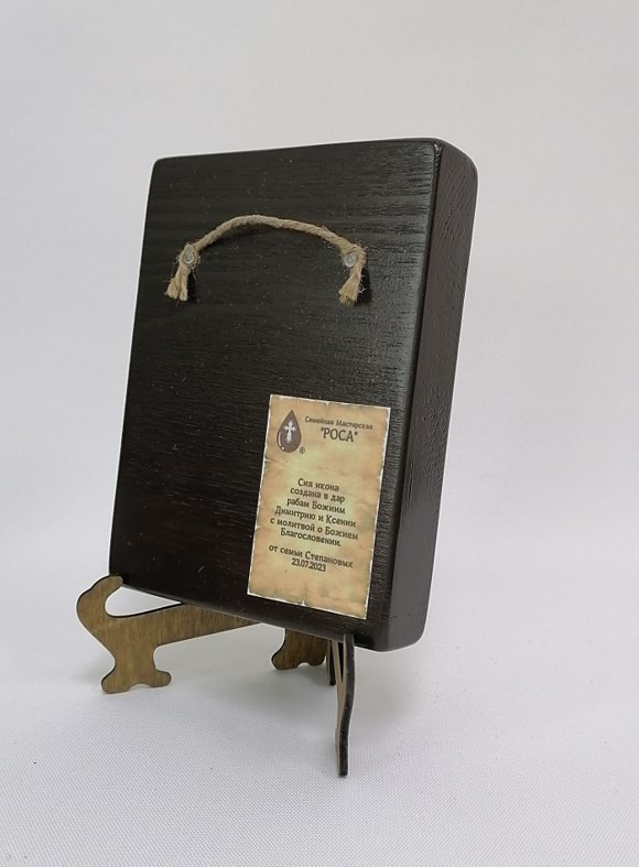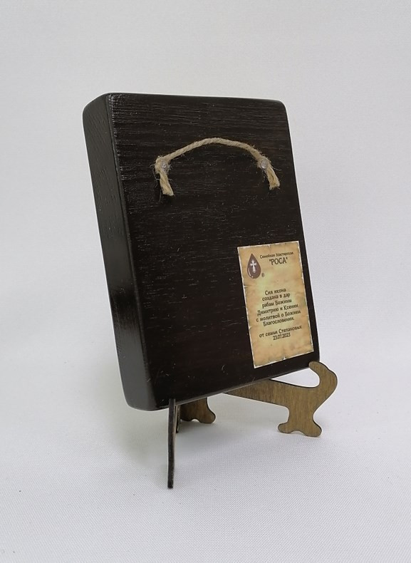 К иконе идет веревочный крепеж для удобного размещения на стене, а также этикетка с информацией об иконе. Надежная упаковка из гофрокартона и воздушно-пузырьковая пленка обеспечивают сохранность товара при транспортировке.