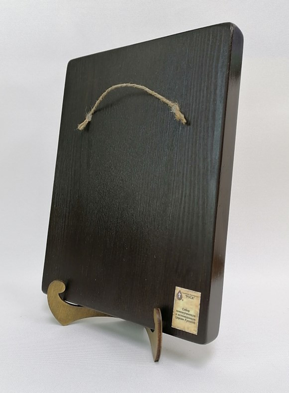 К иконе идет веревочный крепеж для удобного размещения на стене, а также этикетка с информацией об иконе. Надежная упаковка из гофрокартона и воздушно-пузырьковая пленка обеспечивают сохранность товара при транспортировке.