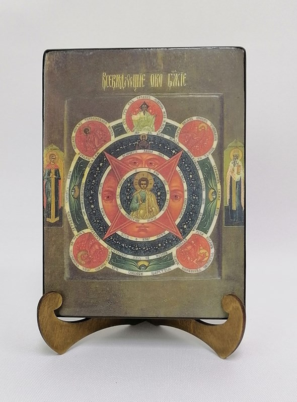 Икона на дереве "Всевидящее Око Божие, 15x20x3 см, арт А949-2" станет прекрасным подарком для верующего человека, а также займет особое место в любом доме, храме или церкви.