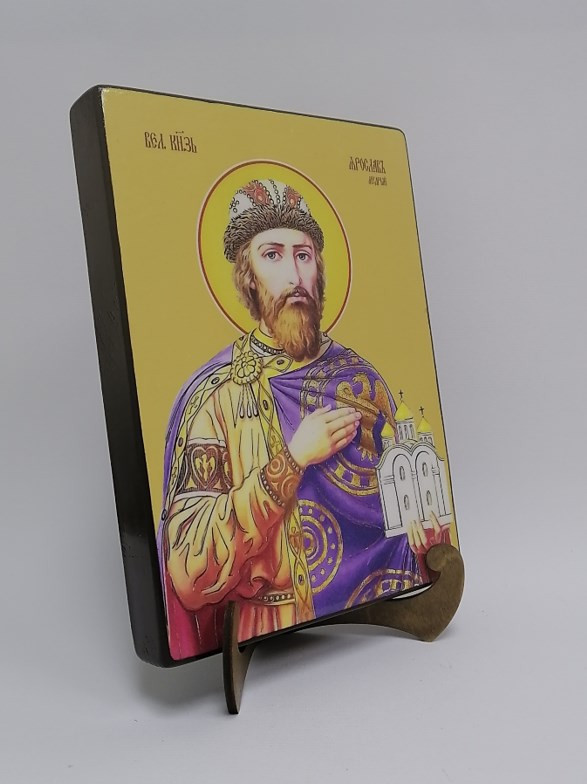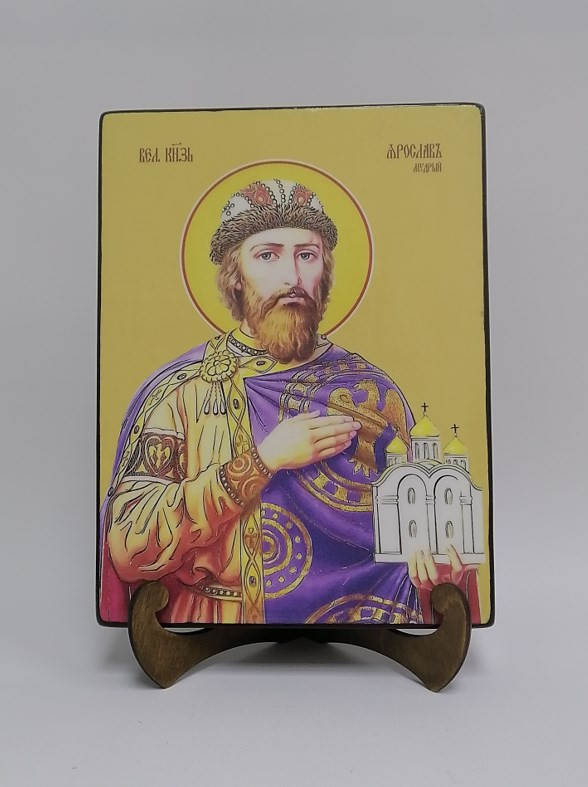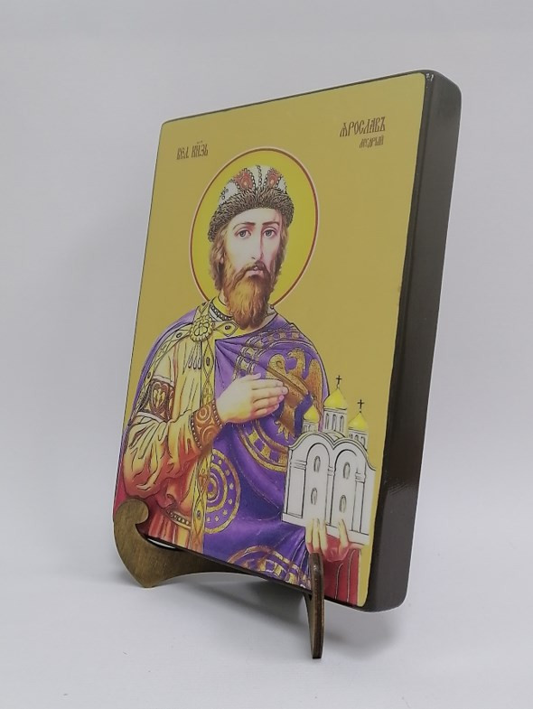 Икона на дереве "Святой князь Ярослав Мудрый, 18x24x3 см, арт Ид4283-3" станет прекрасным подарком для верующего человека, а также займет особое место в любом доме, храме или церкви.